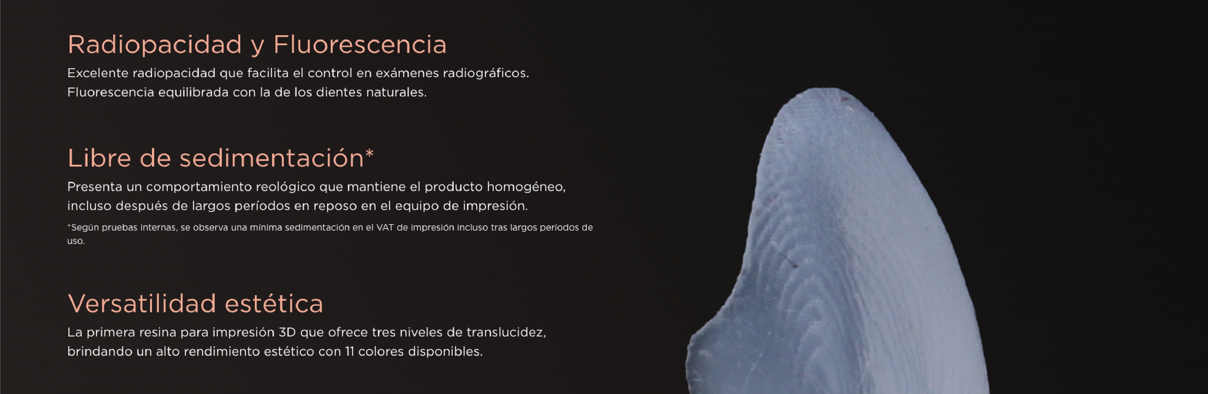 Gracias a su alto contenido de cargas inorgánicas, compuestas por materiales vitrocerámicos, ofrece una alta resistencia mecánica, además de una versatilidad estética que proporciona brillo y características ópticas únicas.