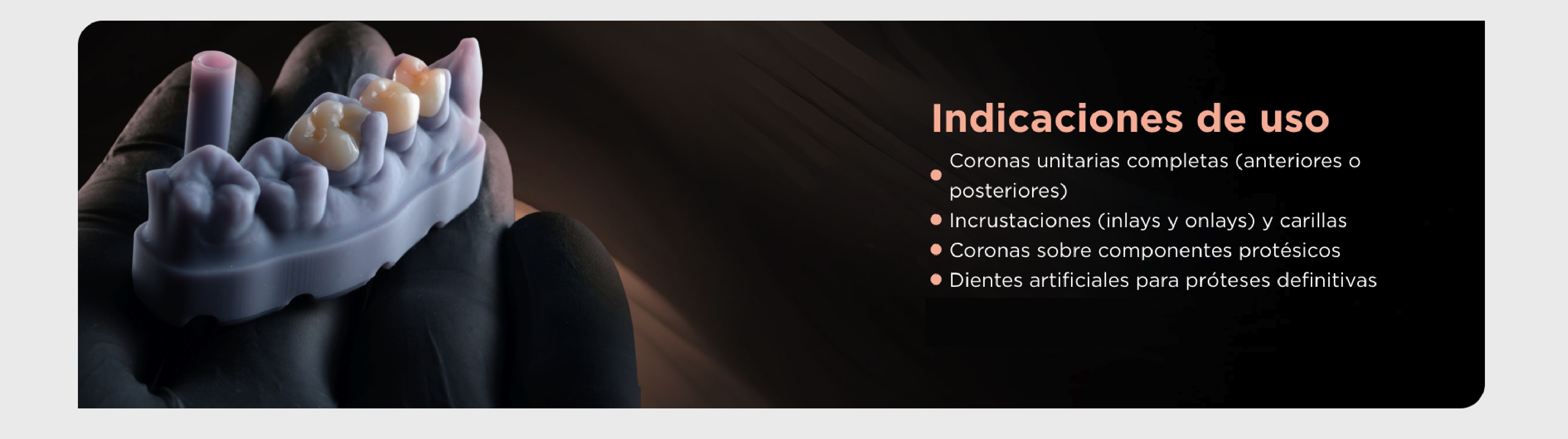 Voxelprint Ceramic es un composite dental fotopolimerizable y biocompatible, indicado para la fabricación de prótesis unitarias sobre dientes e implantes.